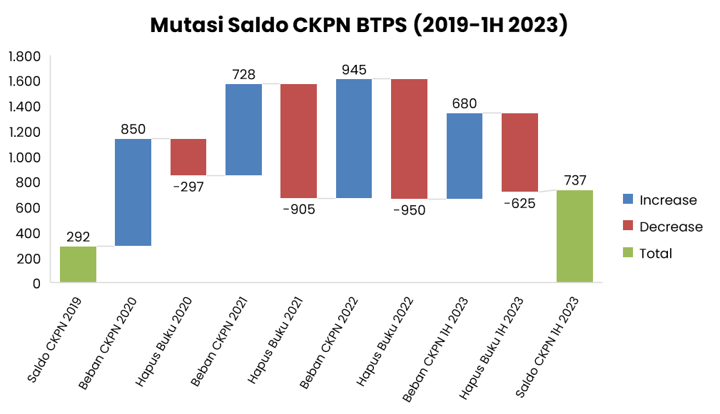 Karena itulah, saldo CKPN BTPS hanya meningkat dari Rp 292 miliar pada tahun 2019 menjadi Rp 737 miliar pada semester 1 2023.